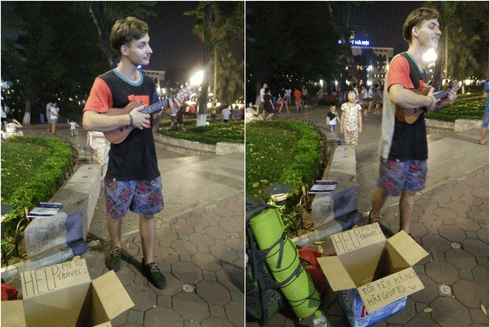 Anh chàng này biểu diễn nhạc để kiếm tiền du lịch.