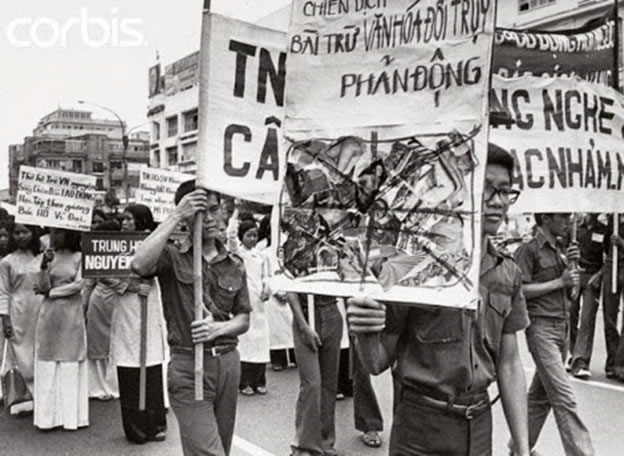Một cảnh đốt sách vào tháng 5 năm 1975 ở Sài Gòn