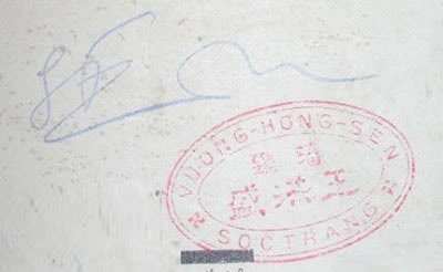 Chữ ký và con dấu đỏ trên sách trong tủ sách của cụ Vương Hồng Sển.