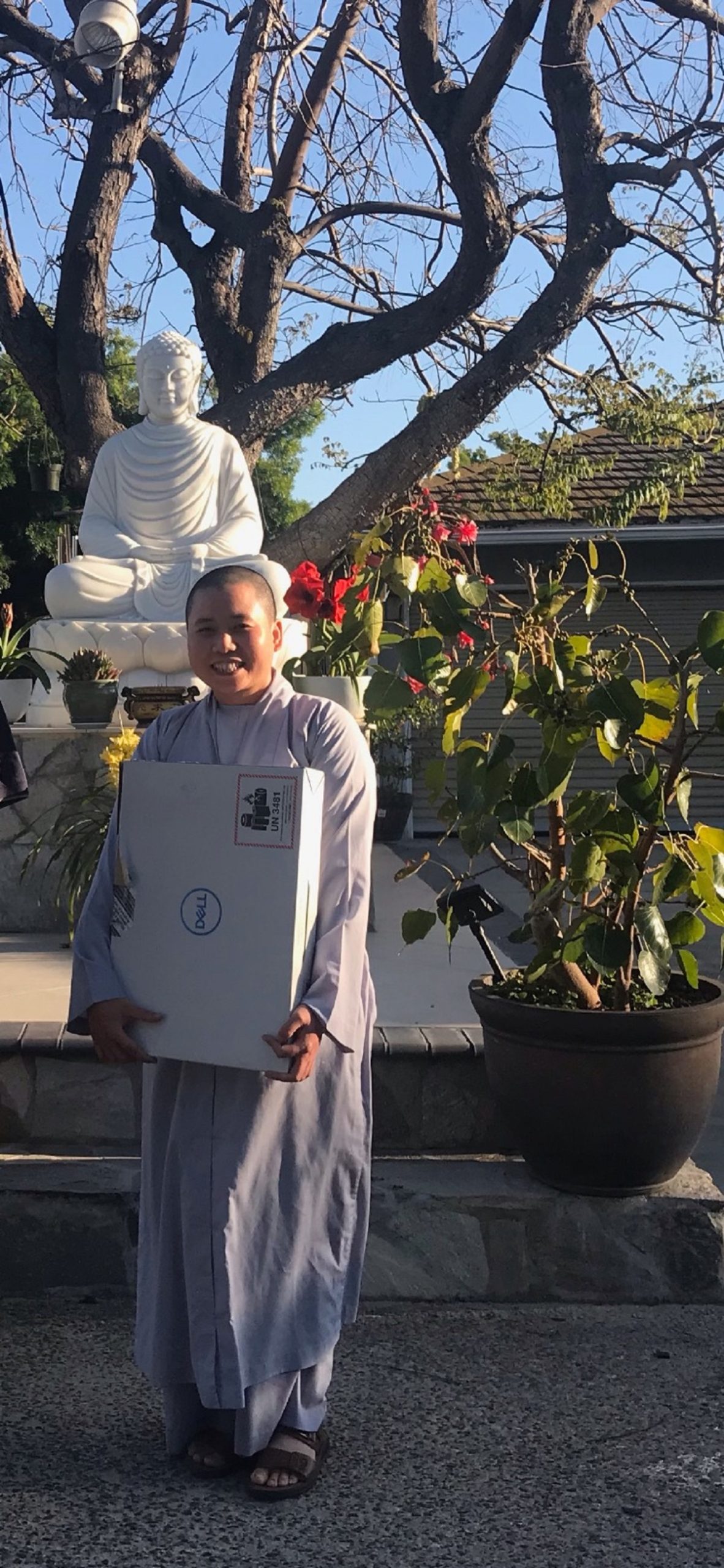 – Sư cô Tuệ Hương đang học ở Santa Ana mà máy bị hư. Sư cô nhắn cho tôi.