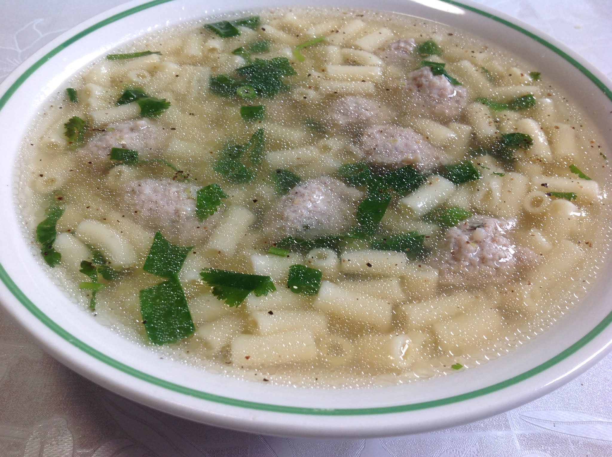 Nhớ chuyện hai chục năm về trước, trong một lần cô con gái của bà bạn người Thái lâm bệnh nằm nhà thương cả tuần lễ, mỗi ngày phải ăn đồ bệnh viện, cô ta ngán tới óc. Ông xã cô ta cứ phải mua Mc Donald cho cô ta ăn nhưng ăn hoài cũng ngán. Cô ta gọi về cho bà mẹ than vản, nói ăn không vô nhưng bà mẹ ở cách xa bệnh viện 200 trăm cây số làm sao nấu nướng mang tới được. Bà mẹ cầu cứu với tôi nhờ đi thăm dùm.  Tôi bèn nấu món macaroni soup này đem vào, cô ta ăn ngon lành hai ba ngày liên tiếp và khen lấy khen để, hỏi tôi cách nấu để mai mốt về nhà nấu cho sắp nhỏ ăn.