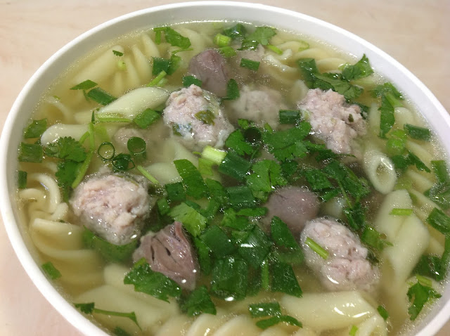 Hai tuần nay bị lockdown, muốn ăn bánh canh mà không đi chợ được, lục tủ thấy còn gói macaroni, bà bếp lôi thịt trong tủ đá ra nấu tạm, tuy không ngon như bánh canh Việt Nam mình nhưng rắc hành ngò tiêu lên ăn cũng đỡ thèm.